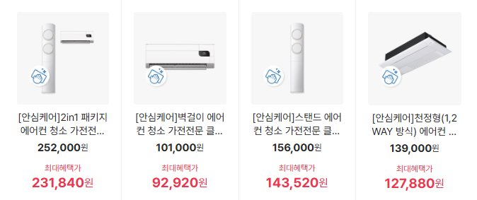- 안심케어 서비스 활용: 설치 시, 클리닝 서비스를 반값에 신청할 수 있음